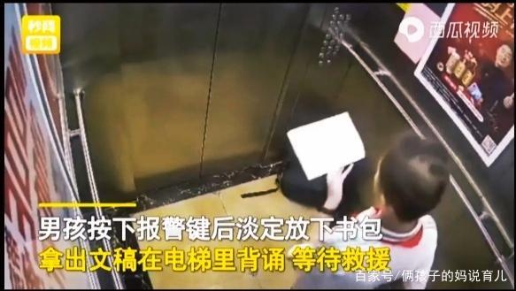小男孩被困電梯等待救援時(shí)淡定背書