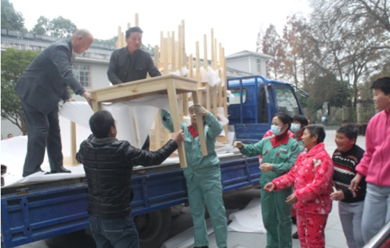 “來了,來了……”12月14日當(dāng)公司的捐送物資剛開進(jìn)福利院食堂大樓的門口,就已經(jīng)圍了很多孩子,這是公司在了解到福利院現(xiàn)有的桌椅已經(jīng)使用多年,有的搖晃不穩(wěn),有的擋板缺失,有的凹凸不平,公司高度重視,