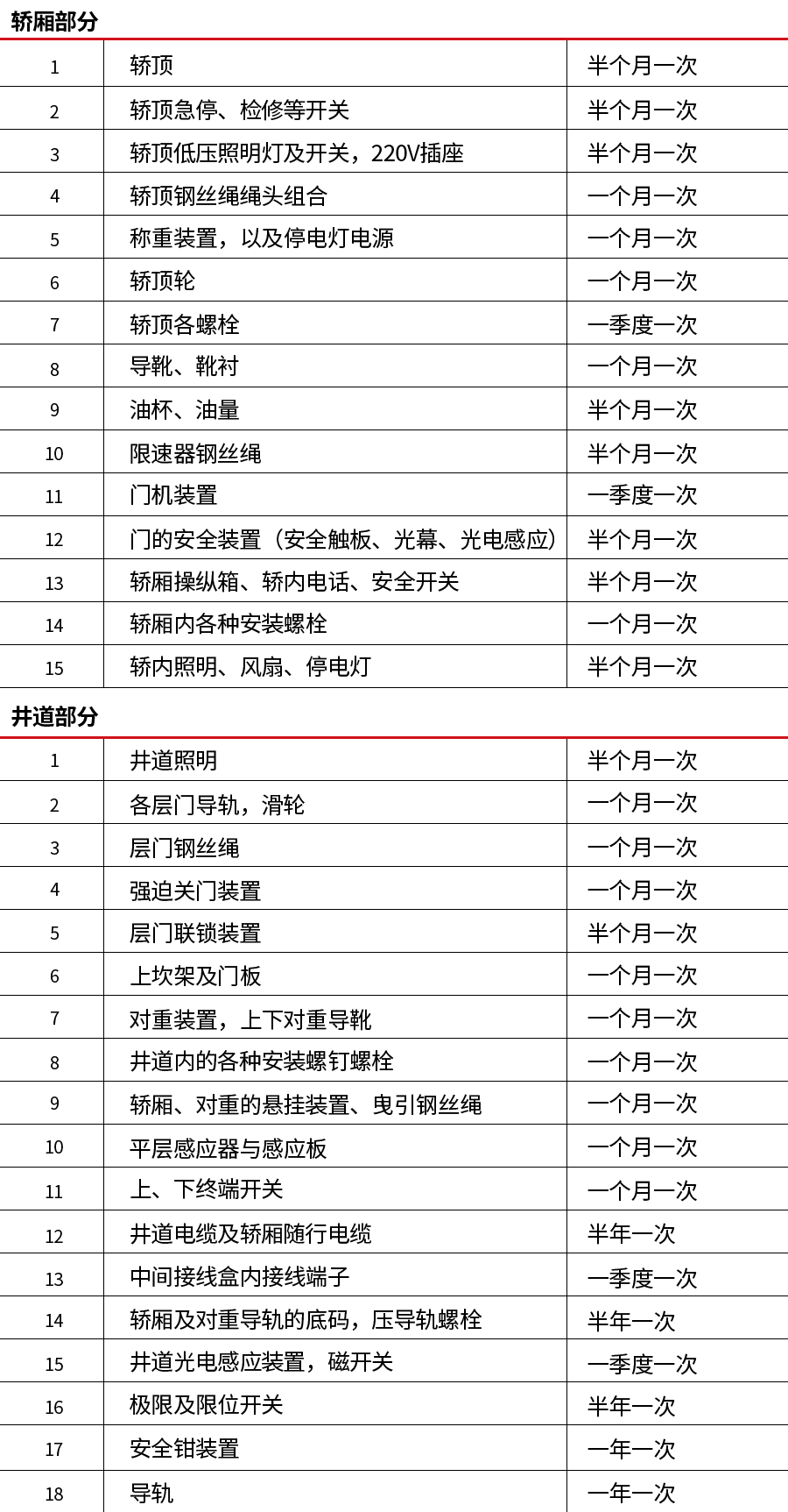 例如對于電梯非常重要的制動器(相當(dāng)于汽車剎車)則必須15天維保一次。