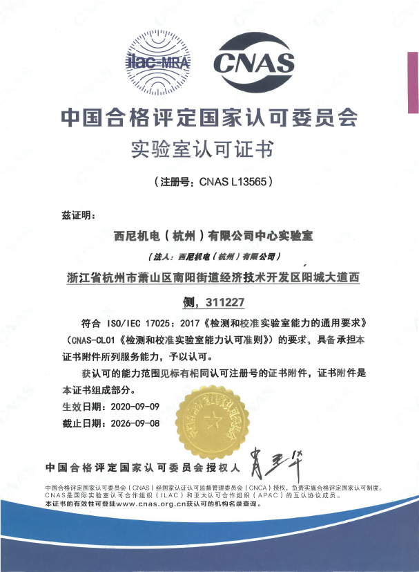 西尼一直以客戶需求為核心,通過不斷創(chuàng)新和優(yōu)化,推出高質(zhì)量、符合國際標準的電梯產(chǎn)品。CNAS證書,不僅是對我司數(shù)年來科研及檢測技術(shù)成果的肯定,也能更好的提升我司對產(chǎn)品安全、質(zhì)量的保障能力,讓消費者獲得更高品質(zhì)、更加安全、更加舒適的電梯產(chǎn)品。