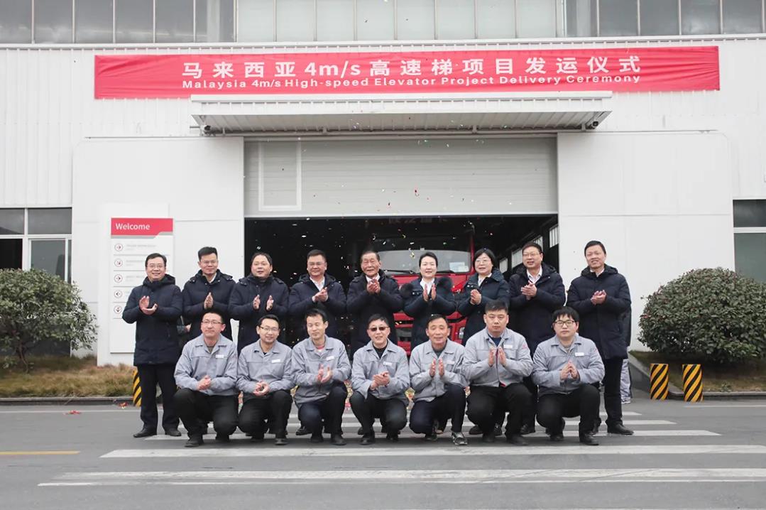 時(shí)光不負(fù)奮斗者,長(zhǎng)風(fēng)萬(wàn)里啟新程。1月8日,出口馬來(lái)西亞16臺(tái)4M/S高速梯順利發(fā)運(yùn)并在西尼南陽(yáng)廠區(qū)舉行了熱烈簡(jiǎn)短的發(fā)運(yùn)儀式。