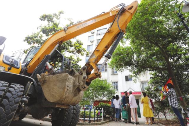 施工人員正在樓道單元門口挖開路面,樓內(nèi)的居民用手機(jī)拍下這一激動(dòng)人心的時(shí)刻。記者杭興微攝 老小區(qū)增設(shè)電梯一直是備受關(guān)注的話題,尤其是去年粵海廣場(chǎng)三個(gè)單元樓成功增設(shè)電梯,讓老小區(qū)的居民們看到了希望。昨天,