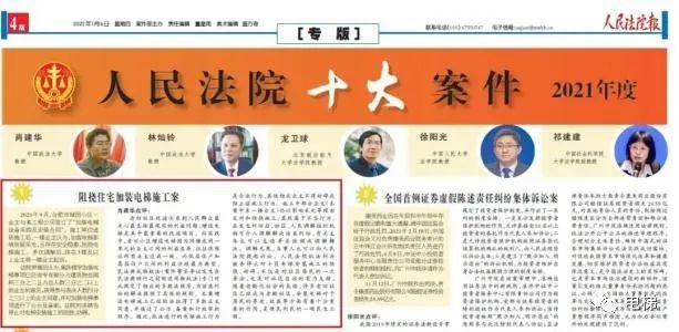 阻撓住宅加裝電梯施工案”獲選2021年度人民法院十大案件!