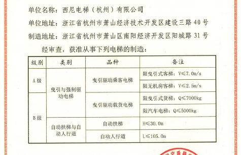 恭賀西尼電梯獲得7m/s超高速電梯制造A級資質(zhì)證書