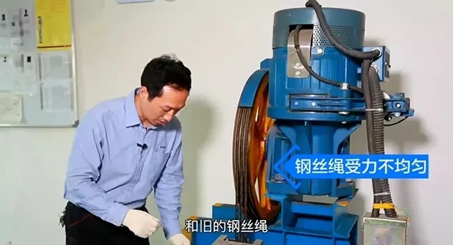 在嚴(yán)重的情況下,鋼絲繩有可能和曳引輪產(chǎn)生非正常的滑移引起安全事故,這就好比我們的轎車在更換輪胎的時(shí)候也是前輪或者后輪同時(shí)成對更換,所以我們更換鋼絲繩的時(shí)候,需要全部同時(shí)更換。